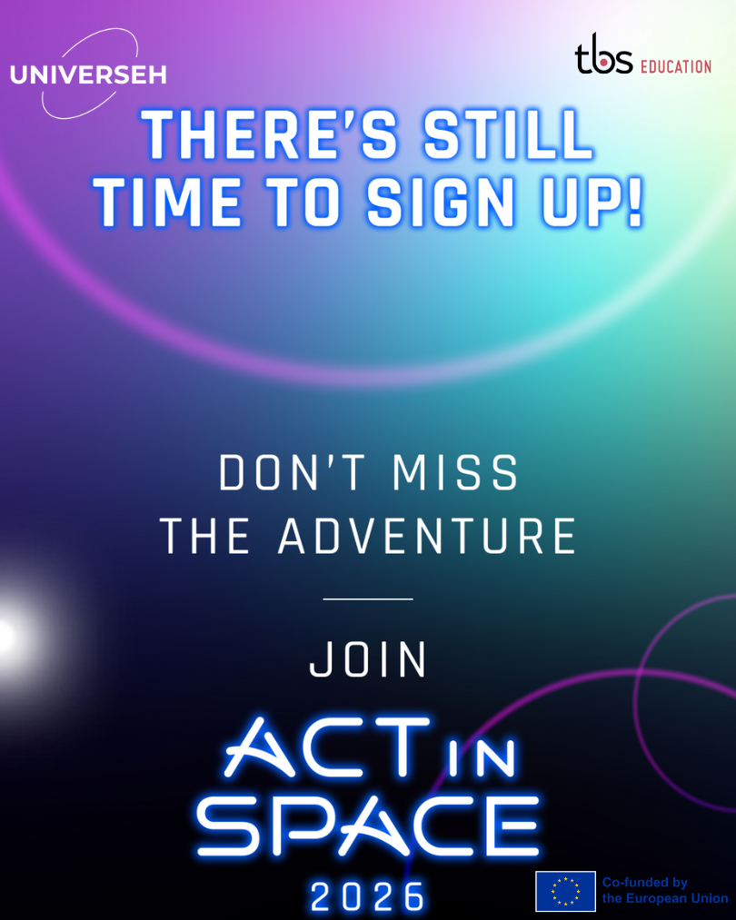 On January 30–31, 2026, TBS Education and UNIVERSEH—in partnership with CNES and ESA—will host the Toulouse 6th edition of Act In Space, a 24-hour international hackathon dedicated to solving real-world challenges using space technologies. Whether you’re a student, researcher, entrepreneur, or professional, this is your chance to collaborate, create, and compete with teams from around the world.