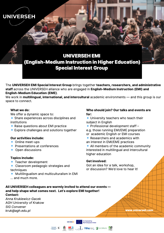 This meet-up marks the first session devoted to the perspective of an EMI teacher, following participants’ interest in hearing about EMI from the classroom practitioner’s standpoint.