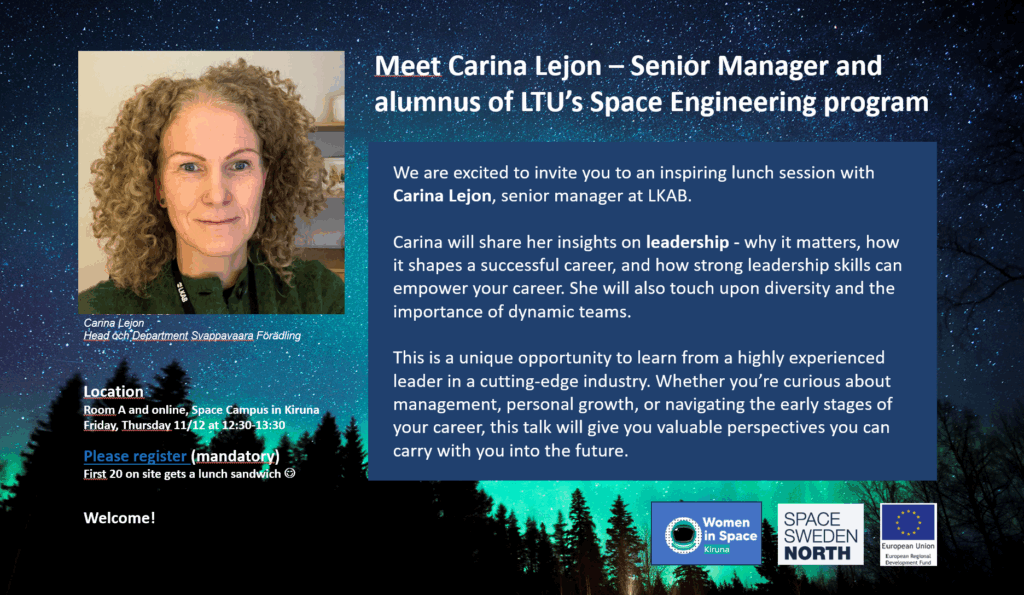 During this hybrid session, Carina will share her insights on leadership: why it matters, how it shapes a successful career, and how strong leadership skills can empower your career. She will also touch upon diversity and the importance of dynamic teams.
