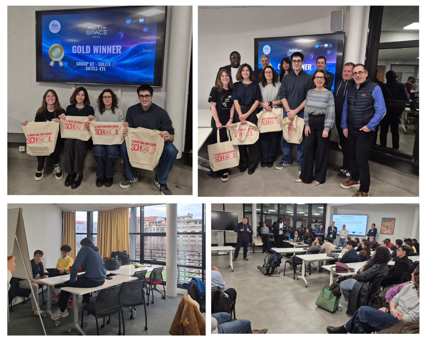 The event thrived thanks to the support of industry leaders such as Capgemini, Airbus, Thales, and Aerospace Angels, as well as the academic and institutional contributions from TBS Education, Toulouse School of Management, CNES (Centre national d’études spatiales), COMUE of Toulouse, and Université Toulouse – Jean Jaurès. After 24 hours of intense brainstorming, development, and pitching, participants left inspired and motivated, already looking forward to the next opportunity to push the boundaries of space innovation.