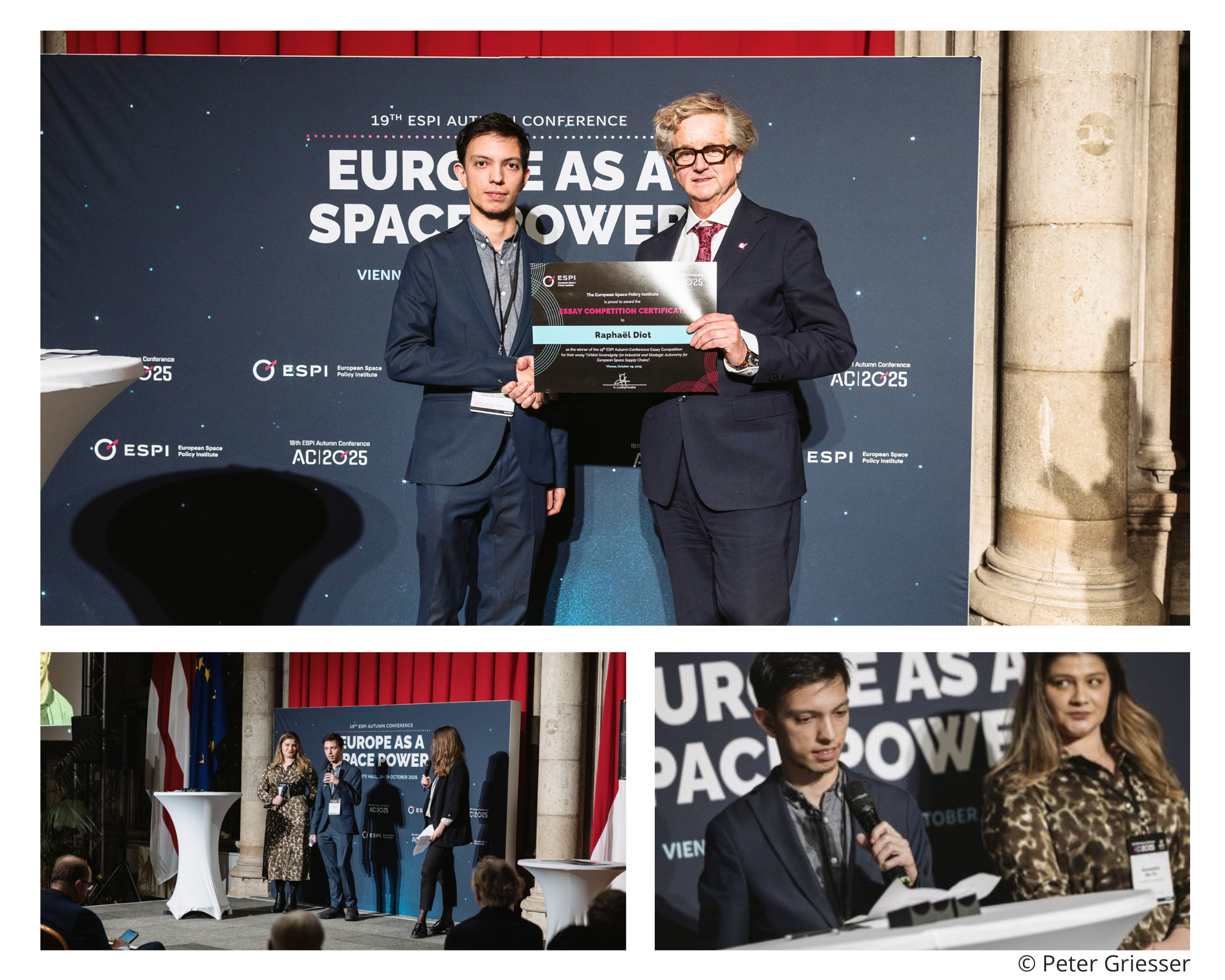 Raphaël had the privilege of being invited to attend the 19th ESPI Autumn Conference last October, where he received his award at Vienna City Hall by Hermann Ludwig Moeller, Director of the European Space Policy Institute and shared a few words during the ceremony.